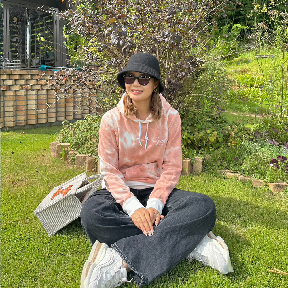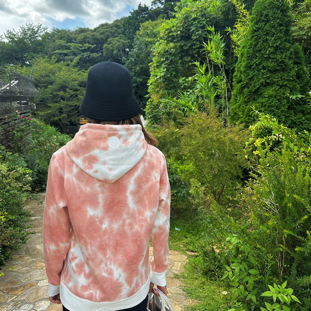 マーブルの色味がオシャレなタイダイ柄フーディーです。