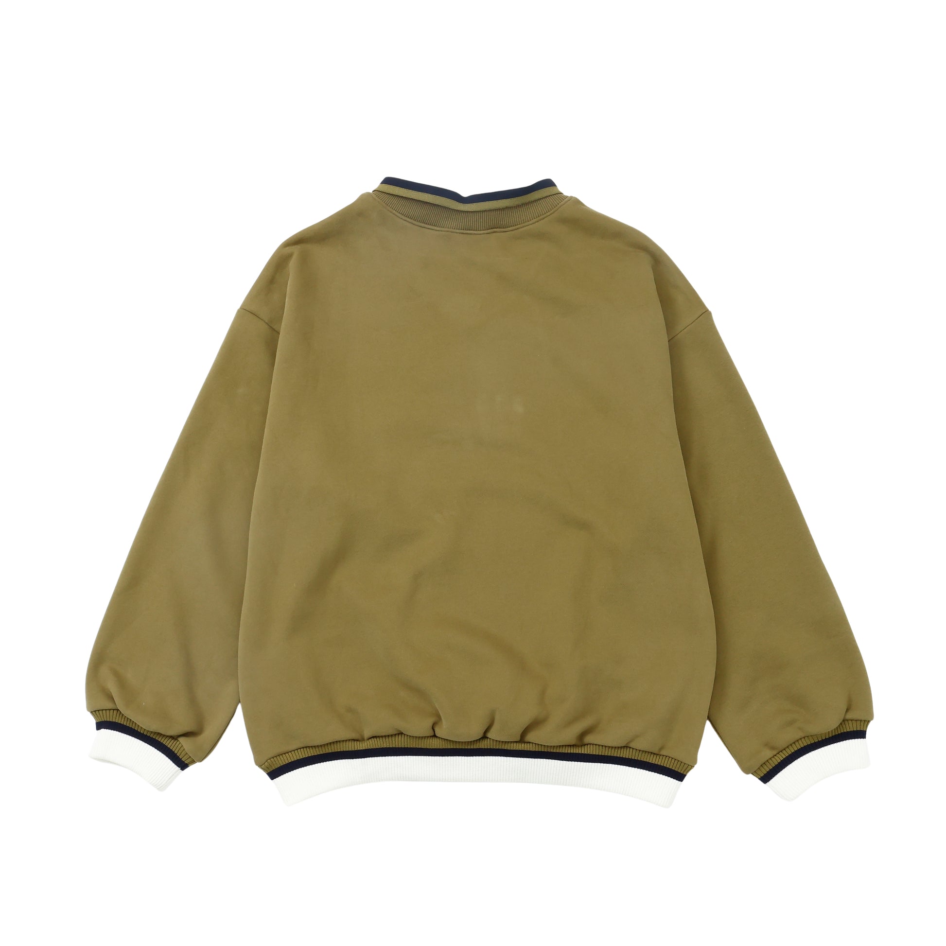 さりげなく開いたVネックと襟と袖のバイカラーがアクセントとなり